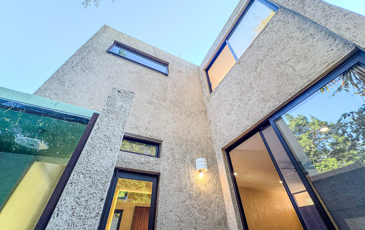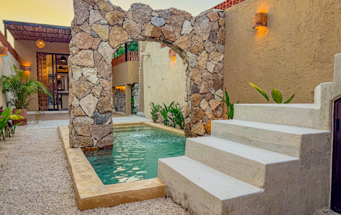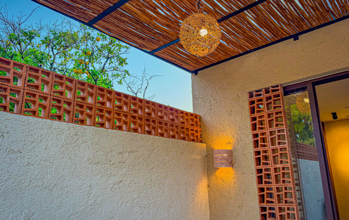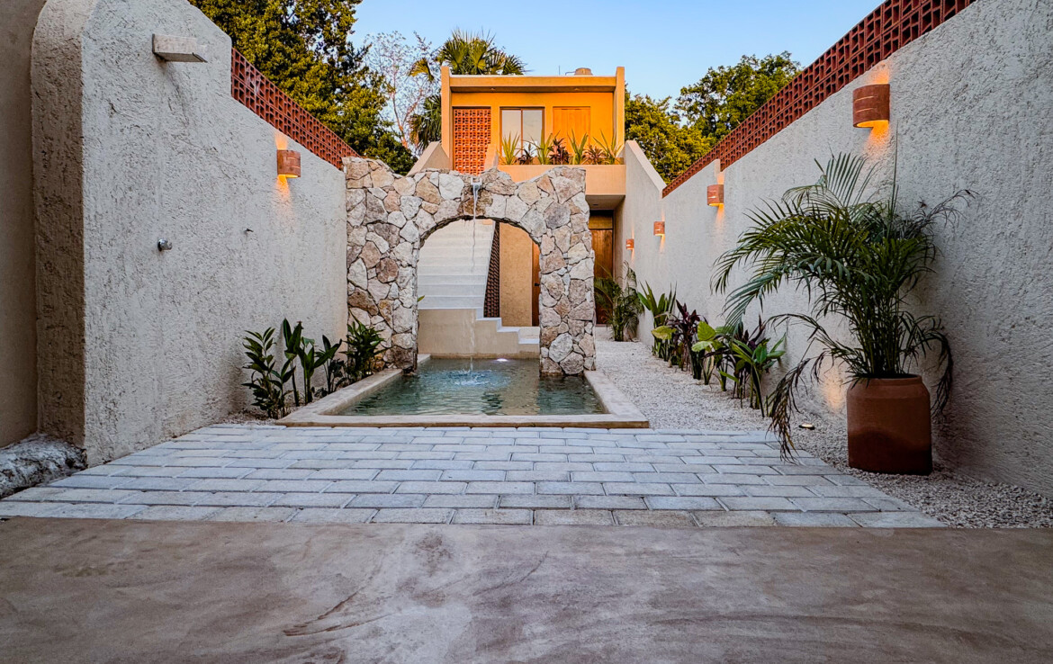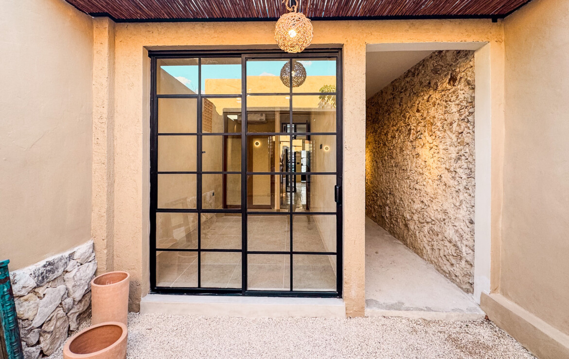 Casa Carpintero is a striking contemporary residence designed by a local architect, thoughtfully embracing the indoor–outdoor lifestyle that Mérida’s tropical climate makes possible. Set along the whole length of the property with nearly 200 square meters of construction, the home unfolds across a series of interconnected pavilions, creating a dynamic flow between living spaces, courtyards, and garden areas. While modern in concept and execution, the house harmonizes beautifully with the region’s vernacular architecture through the use of traditional materials such as red breeze block for airflow, chukum finishes, and a rich palette of flooring including pasta tile, polished cement, ceramic, and terrazzo—all blending seamlessly into a cohesive design.