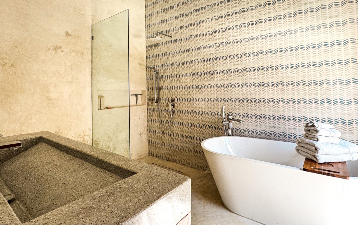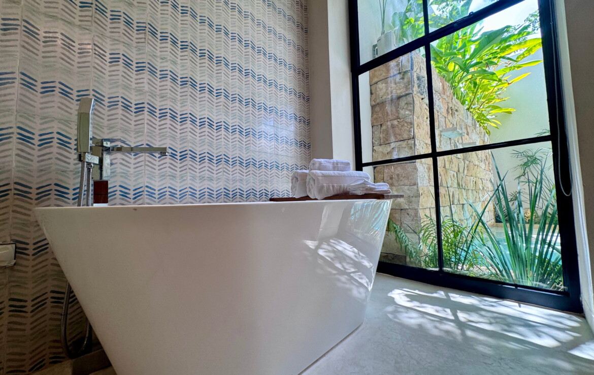 Baño principal con bañera — perfecta para un baño largo bajo la luz tenue