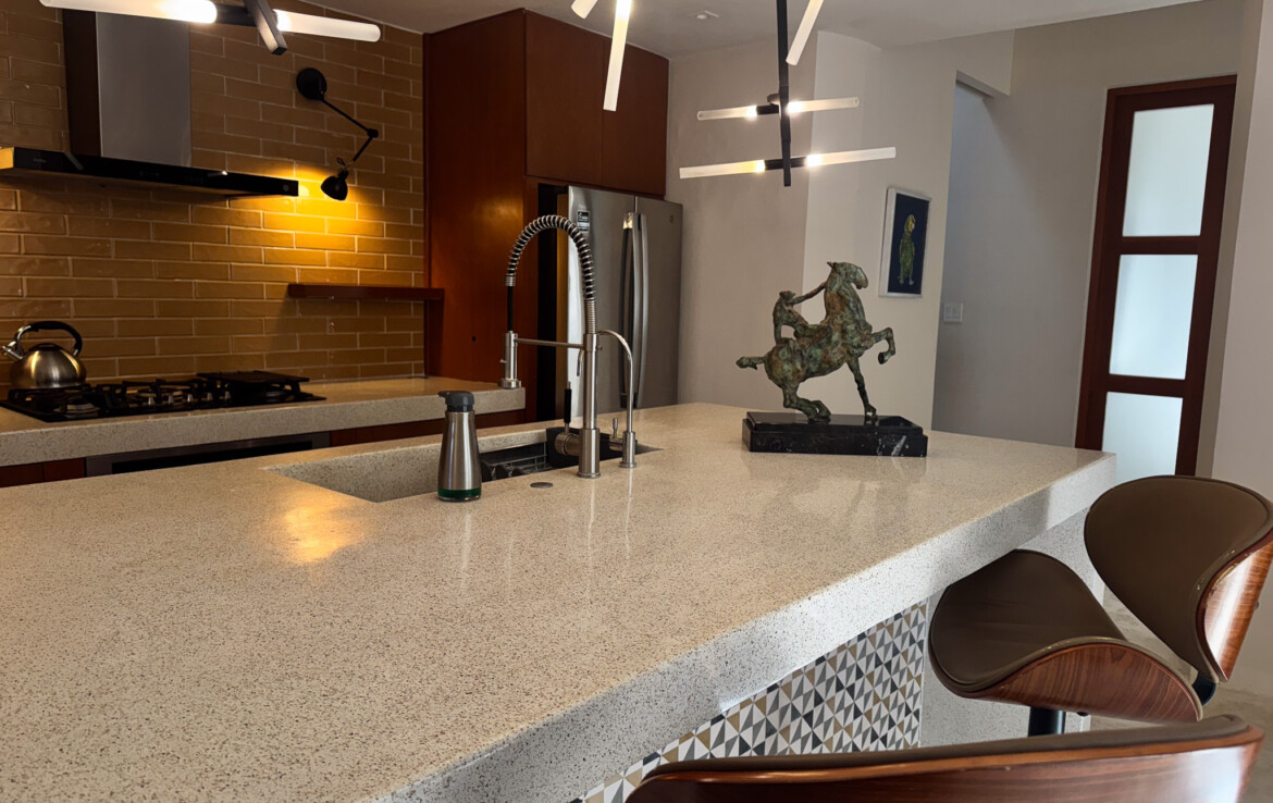 Barra central amplia (sí, puedes cocinar y servir vino a la vez)
